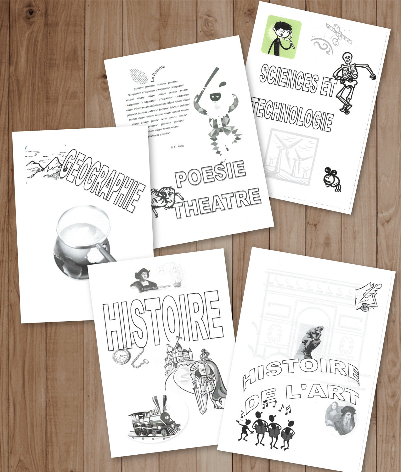 Proposition de page de garde pour cahier de français, en quatre versions. Vous pouvez le télécharger dans les Outils pour l'élève / Cahiers et Classeur.