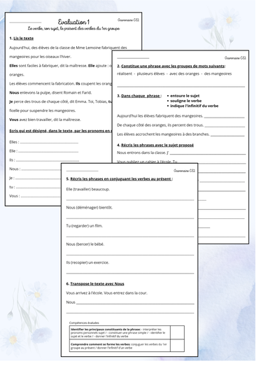 Evaluation 1: le verbe, son sujet, le présent des verbes du 1er groupe