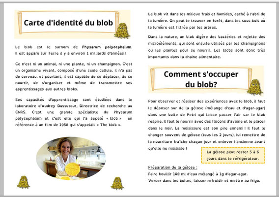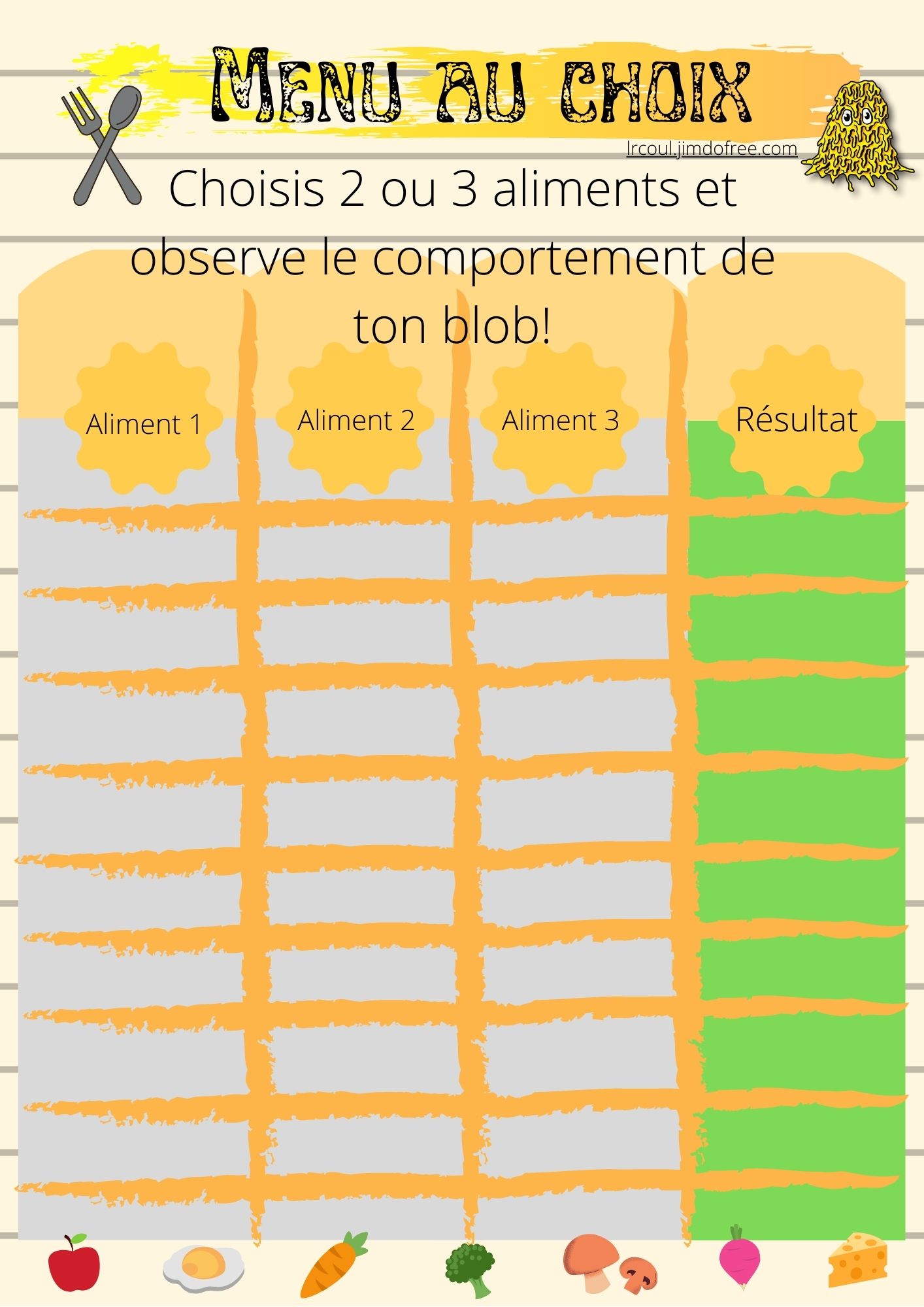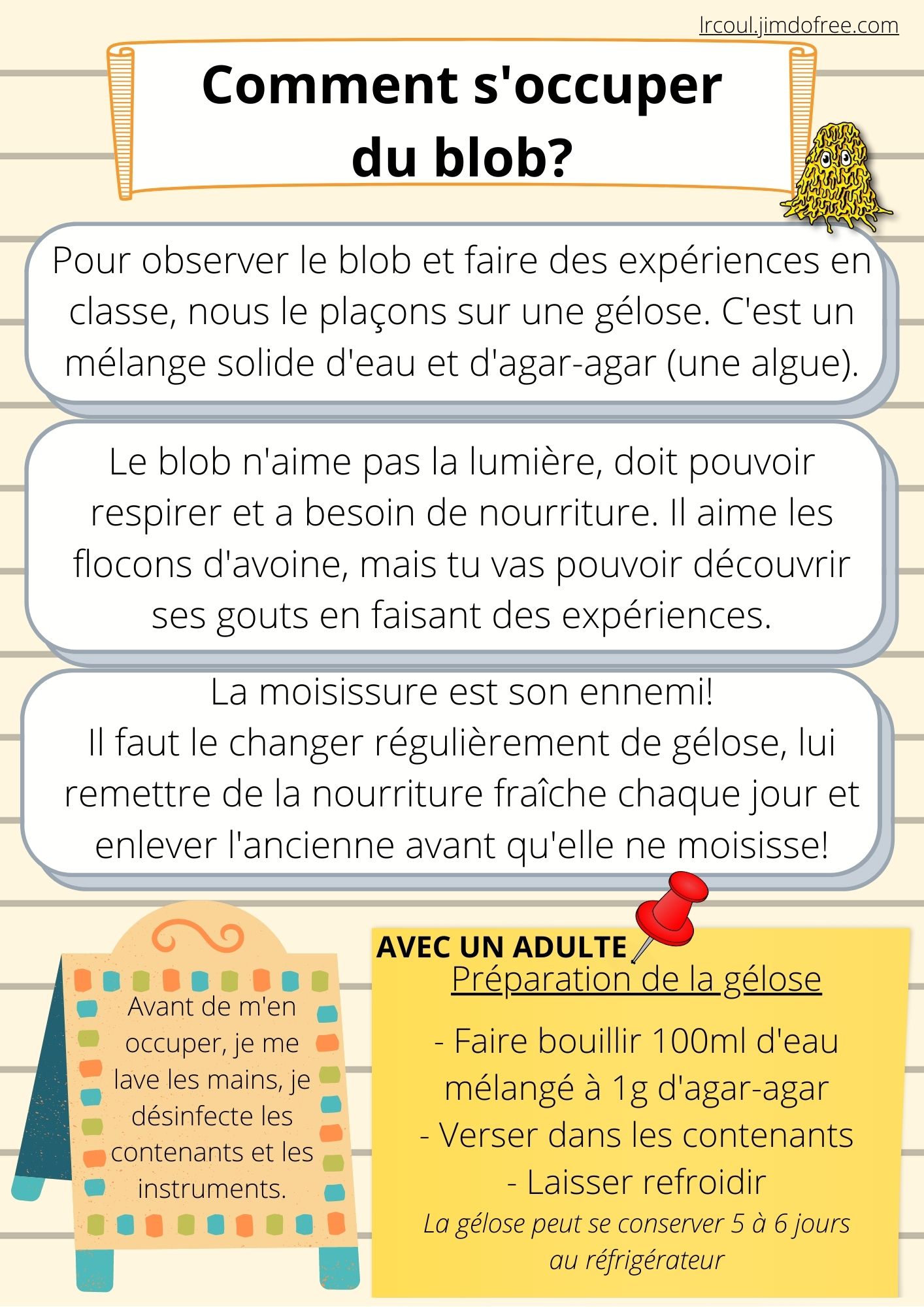 Une fiche pour accompagner les expériences avec Blobby en suivant la démarche scientifique